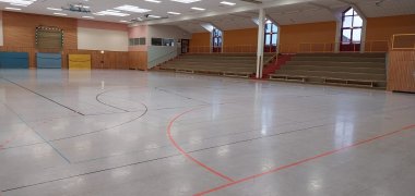 - Großsporthalle 22 x 44 m, teilbar, Tribüne für 350 Zuschauer, 3 Umkleideräume
